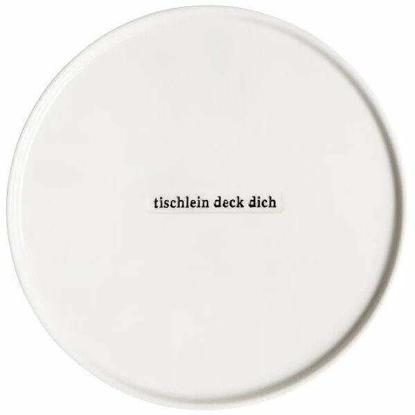 Die charmanten Stücke aus Porzellan von Räder sind bezaubernde Einzelstücke. Kein Exemplar gleicht dem anderen. Der Teller mit Schriftzug Tischlein deck dich bietet Platz für kleine Gebäckstücke oder Tapas.