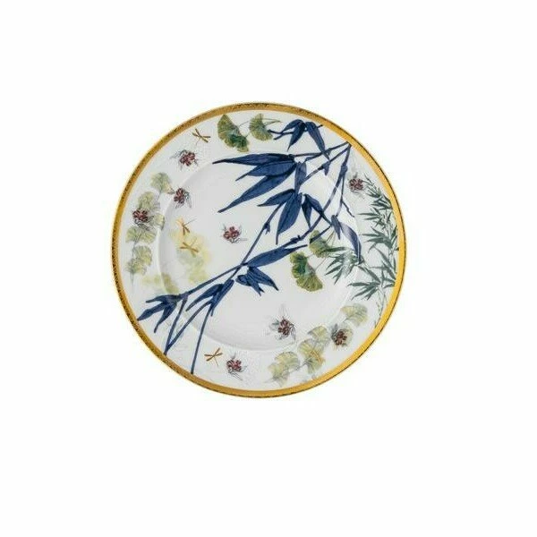 Voller Leben – so kommt der Brotteller der Serie Heritage Turandot White von Rosenthal mit seiner Pflanzenpracht daher. Dabei verhalten sich die Farben gedeckt und versprühen durch den goldenen Abschluss einen Hauch orientalischen Flairs.