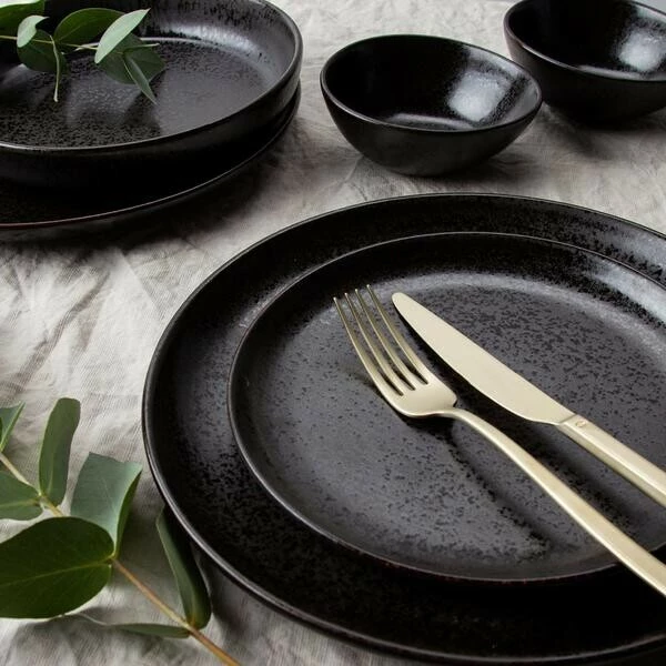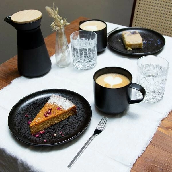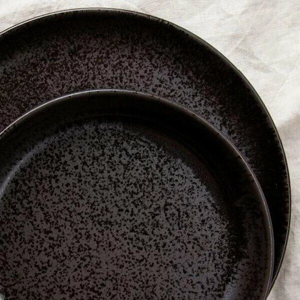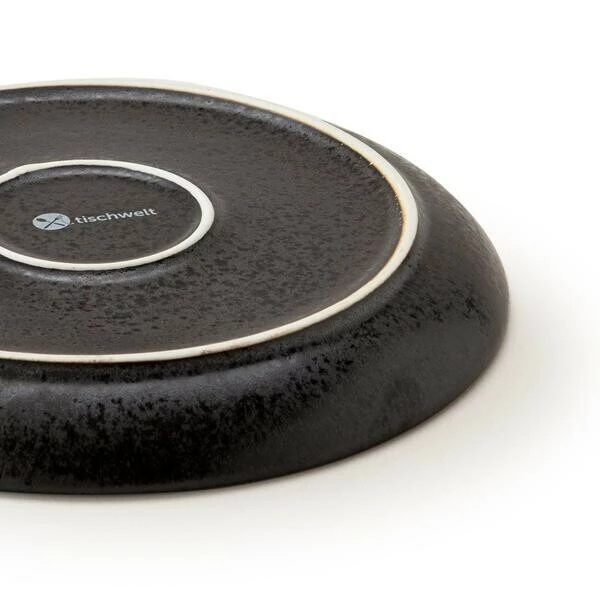 Dieser ausdrucksstarke Frühstücksteller der Serie Java von tischwelt begeistert durch seine faszinierende Farbgebung, die von einem strukturierten Mix aus Schwarz und Anthrazit geprägt ist und durch ein schattiges Braun vollendet wird. Die unregelmäßige Musterung mit den glänzenden Glasursprenkeln lässt Ihr Frühstück kontrastreich erscheinen und bleibt Ihren Gästen mit seinen erdig angehauchten Rändern auch lange nach ihrem Besuch im Gedächtnis.