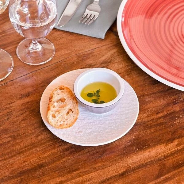 Selbst gemachte Köstlichkeiten: Der vielseitig einsetzbare Brotteller im warmen Weißton eignet sich hervorragend für allerlei Frühstücks – und Abendbrote.